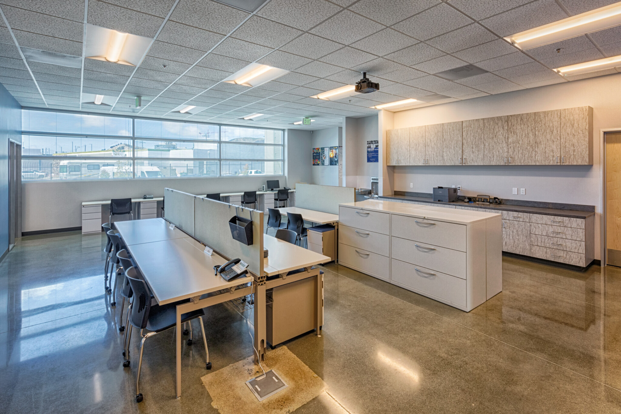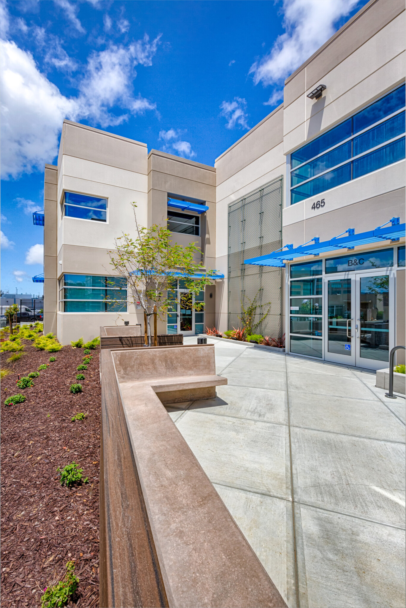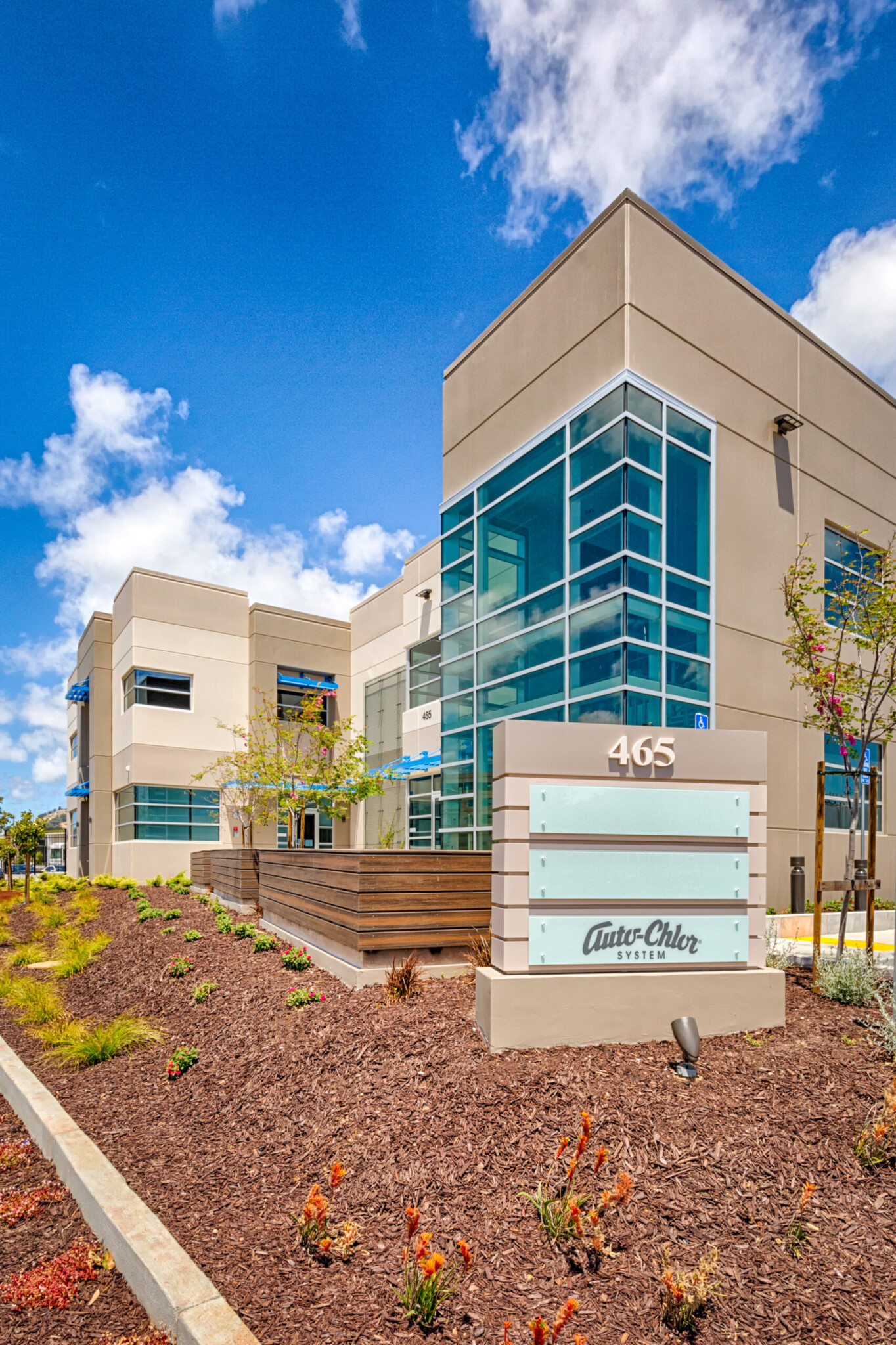 The project also features a chemical pit area for formulating AutoChlor’s cleaning products and includes a custom monument sign complying with the City of South San Francisco‘s Master Sign Program.