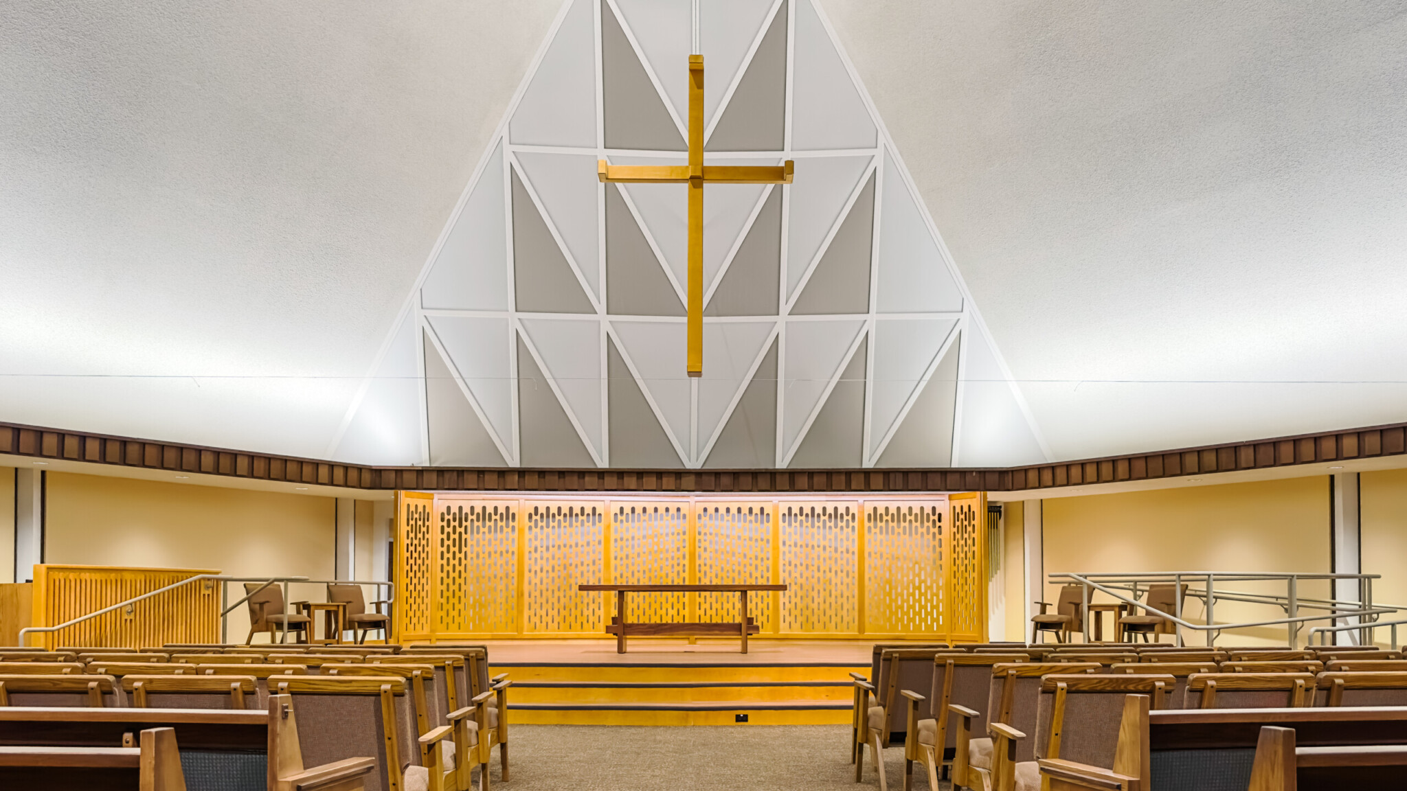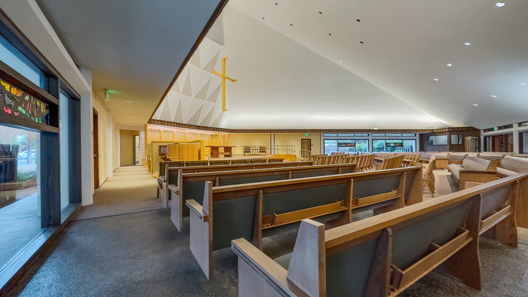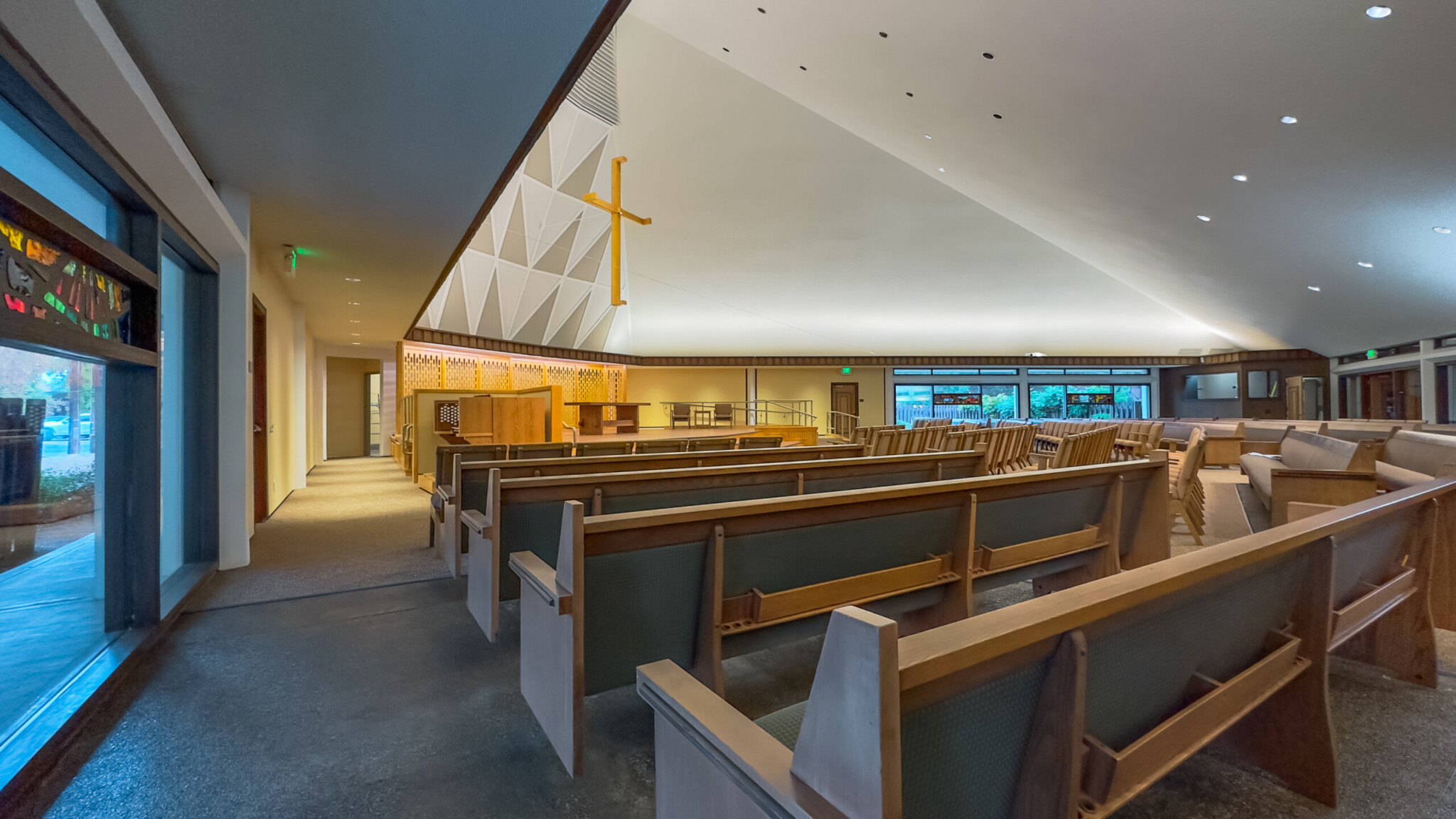 The renovation included a new sound system along with audio/visual/webcasting system to accommodate the congregation’s needs. Pews were also reconfigured for accessibility and flexibility, allowing less occupants within the same space.