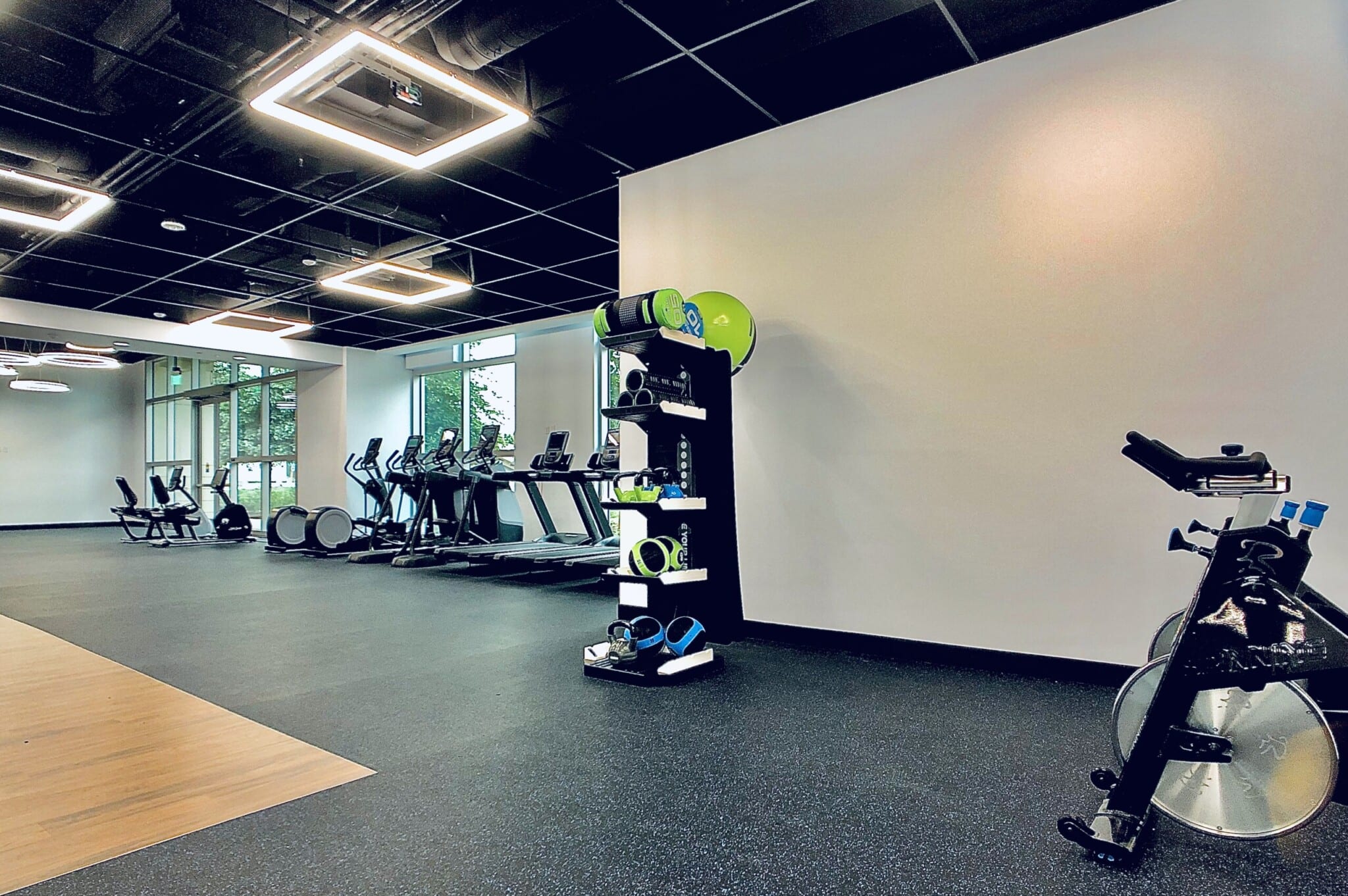 The tenant improvement included KINETEX carpeting at both its cardio & locker room areas, PLAE rubber flooring in the weight training area, while ceramic tile covered floors walls & floors in both showers & restroom areas.
