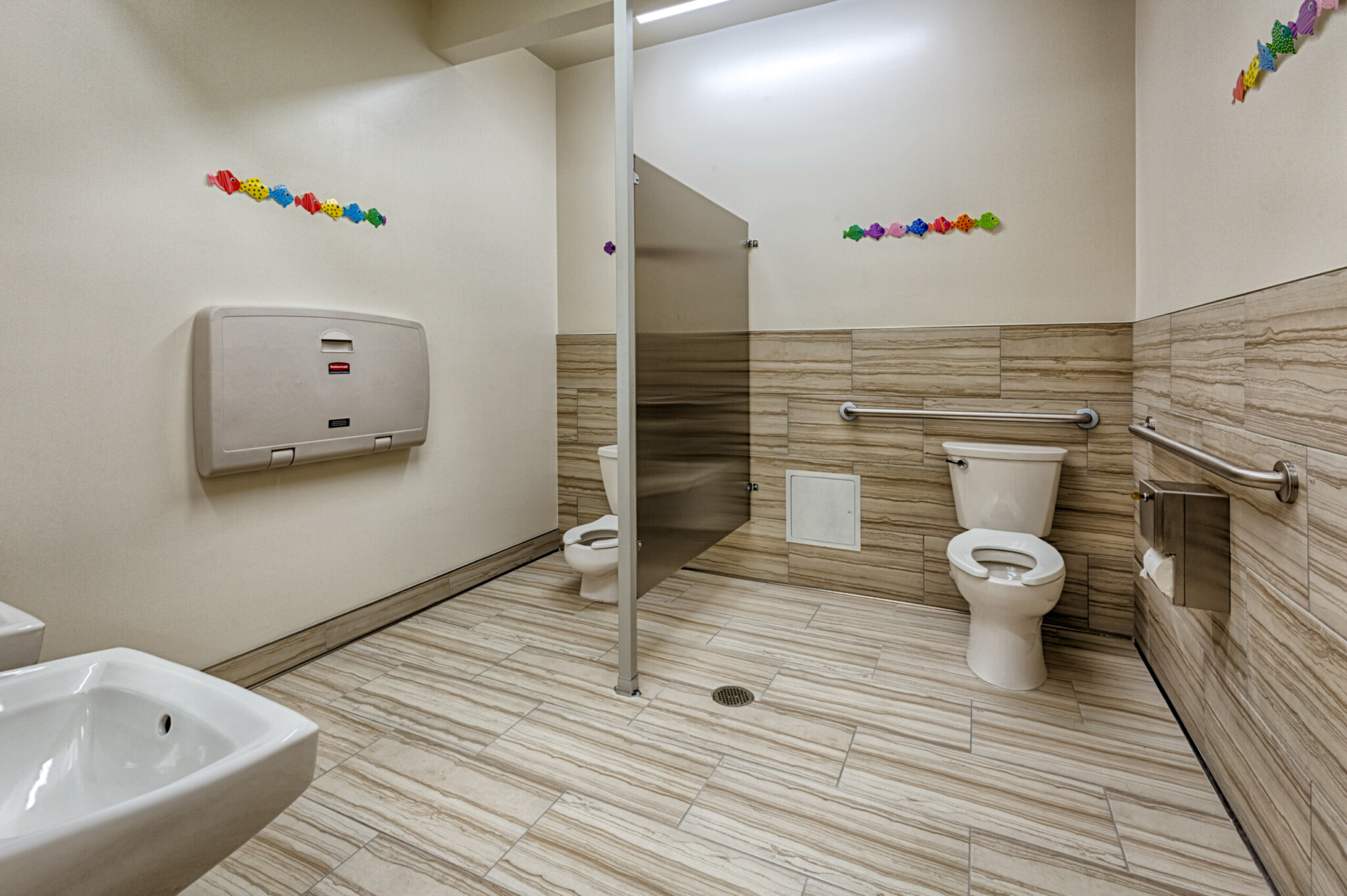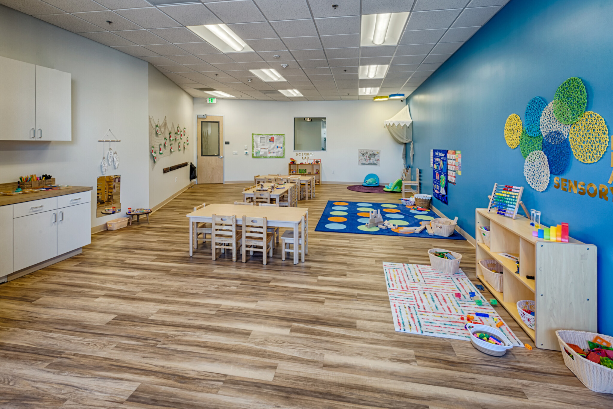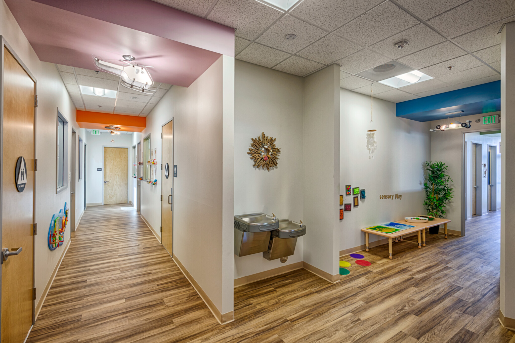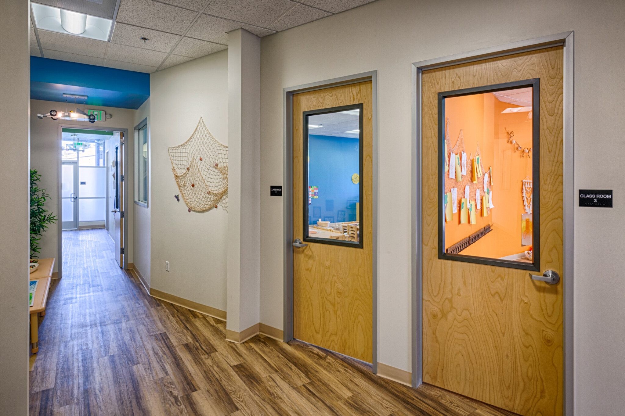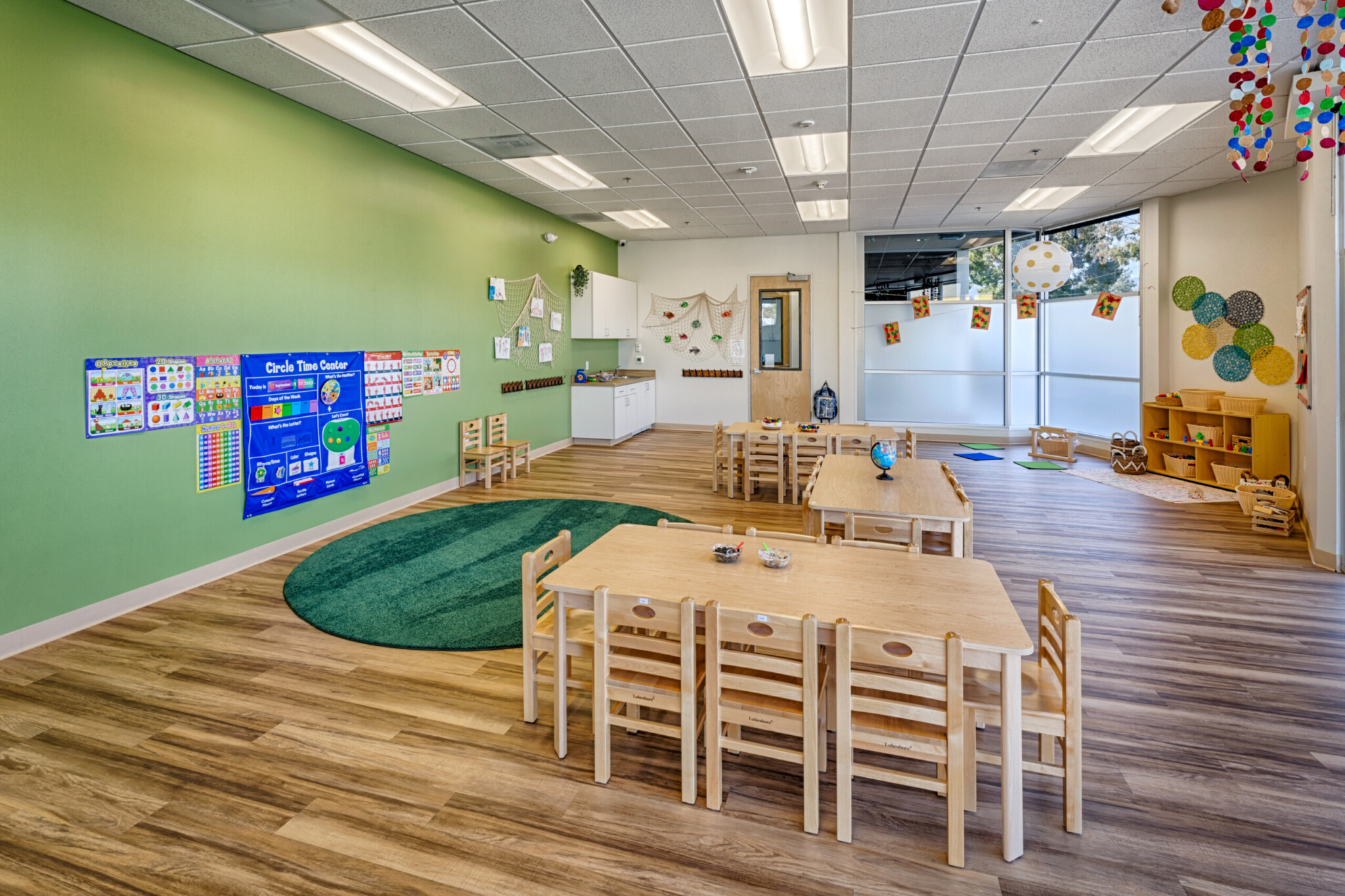 The interior build-out of this 1-story building included construction of new non-bearing walls, plumbing, reconfiguration of the existing mechanical system along with new finishes. Additionally, existing fire alarm and sprinkler systems were both retrofitted to accommodate the all-new classrooms, restrooms, office, and storage.